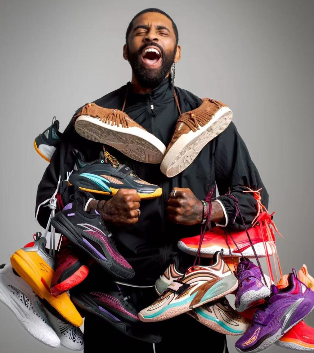 ANTA’s model now mirrors Nike’s almost in reverse — Nike abandons DTC, ANTA doubles down on DTC; Nike leaves China’s supply chain, ANTA relies on China’s supply chain; Nike maintains a single brand, ANTA deploys multiple brands to target segmented markets; Nike tells American stories, ANTA tells Chinese stories. Nike gave up signing Kyrie Irving, ANTA directly invited Irving to become Chief Creative Officer.