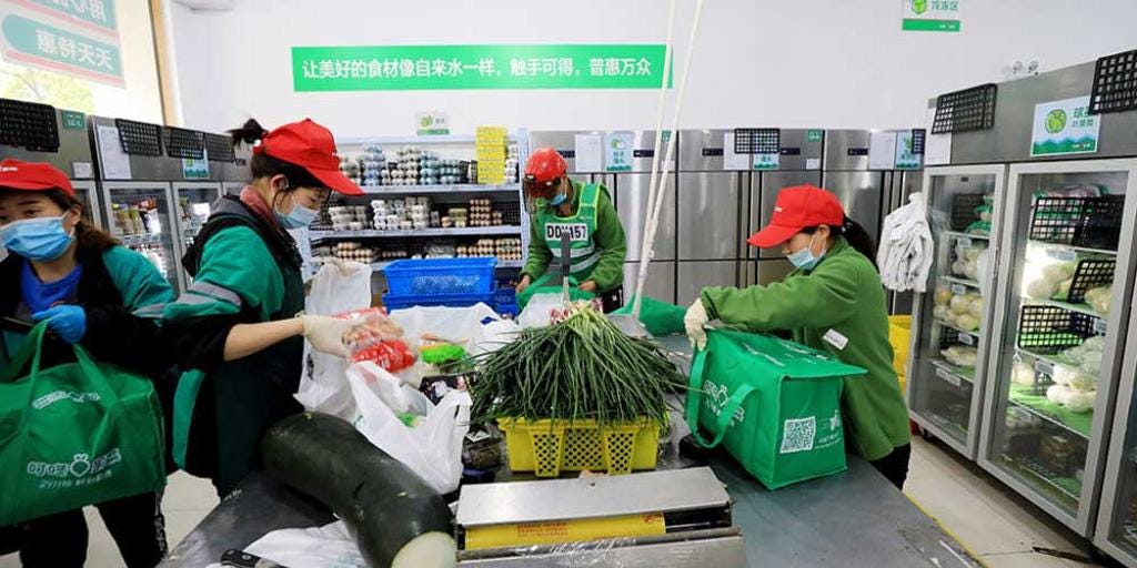 Xiaoxiang Supermarket > Opening physical stores (Beijing Dec 2025, Ningbo Jan 2026) fills online fulfillment gaps and supports Meituan Flash Sale—stores act as fulfillment nodes, enable pickup, in-store experience, and online purchase.