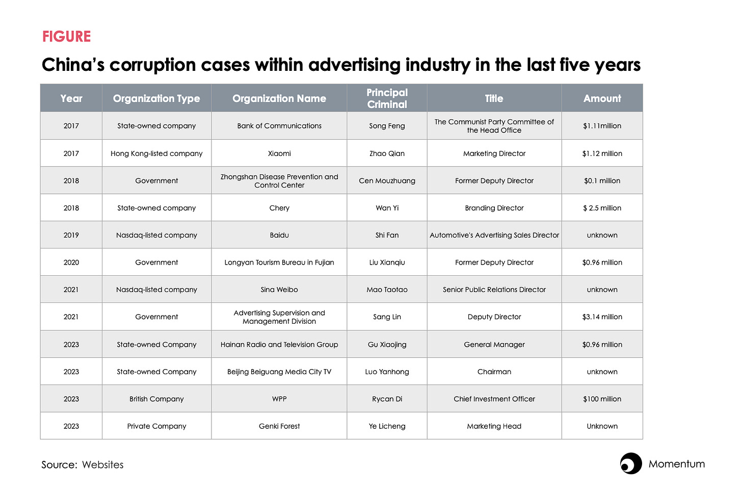 To gain a better understanding of the overall picture of the anti-corruption situation in the Chinese advertising industry, I have compiled some high-profiled while confirmed corruption cases in the industry over the past five years including WPP's case: