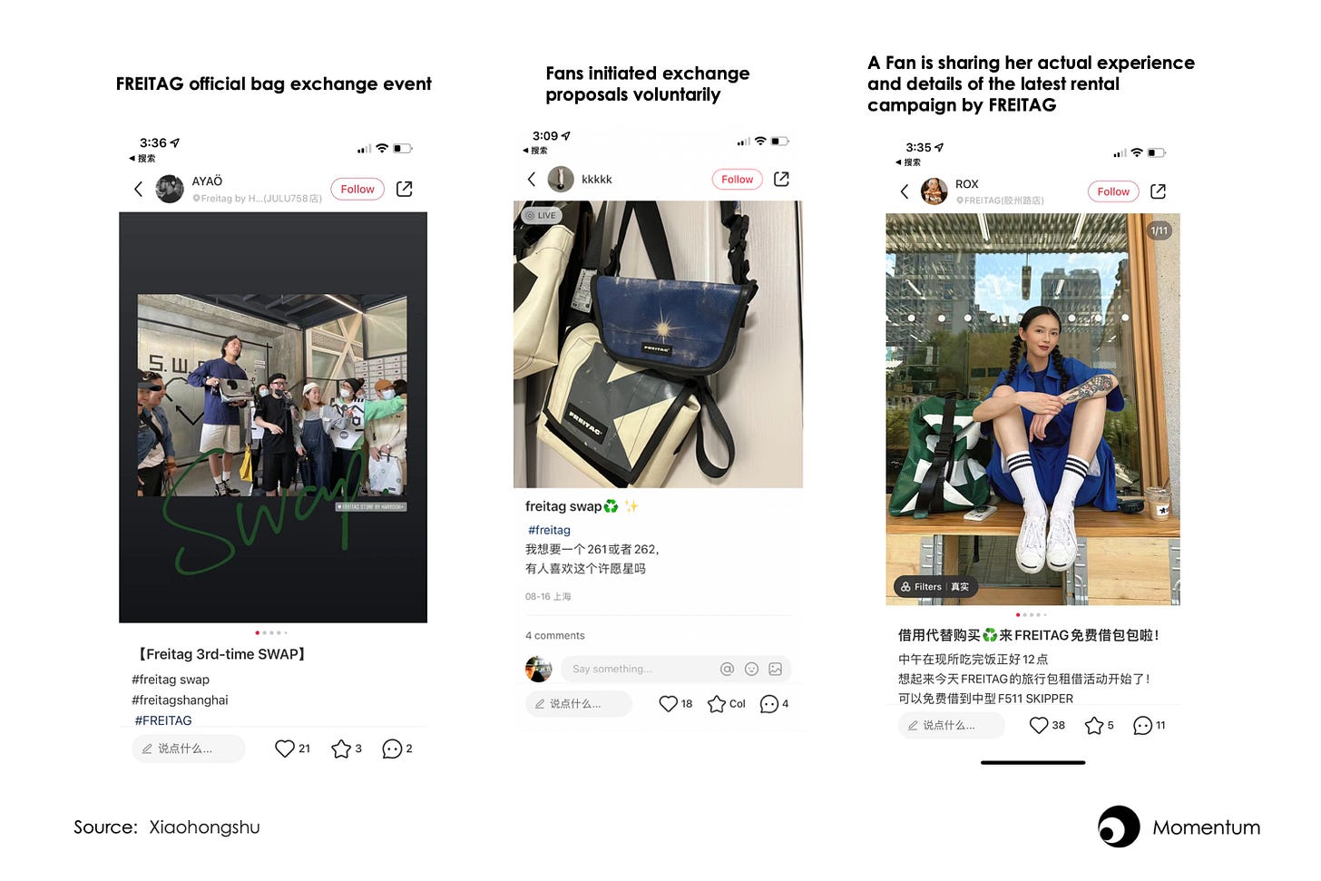 For instance, FREITAG advocated for a circular economy in order to combat overconsumption. Since 2019, they have been urging customers to prioritize usage rights over ownership through initiatives such as leasing and bag exchange campaigns in China. Even during shopping festivals, customers were encouraged to exchange items with each other instead of making more purchases.