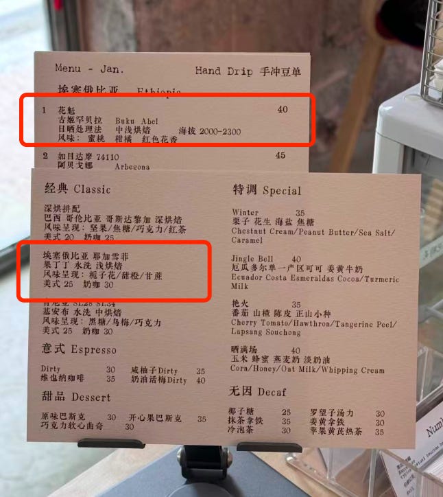 These details now often appear as explicit selling points on the menus of serious specialty cafés — and this isn’t just true for Ethiopia; other origins are following the same pattern.