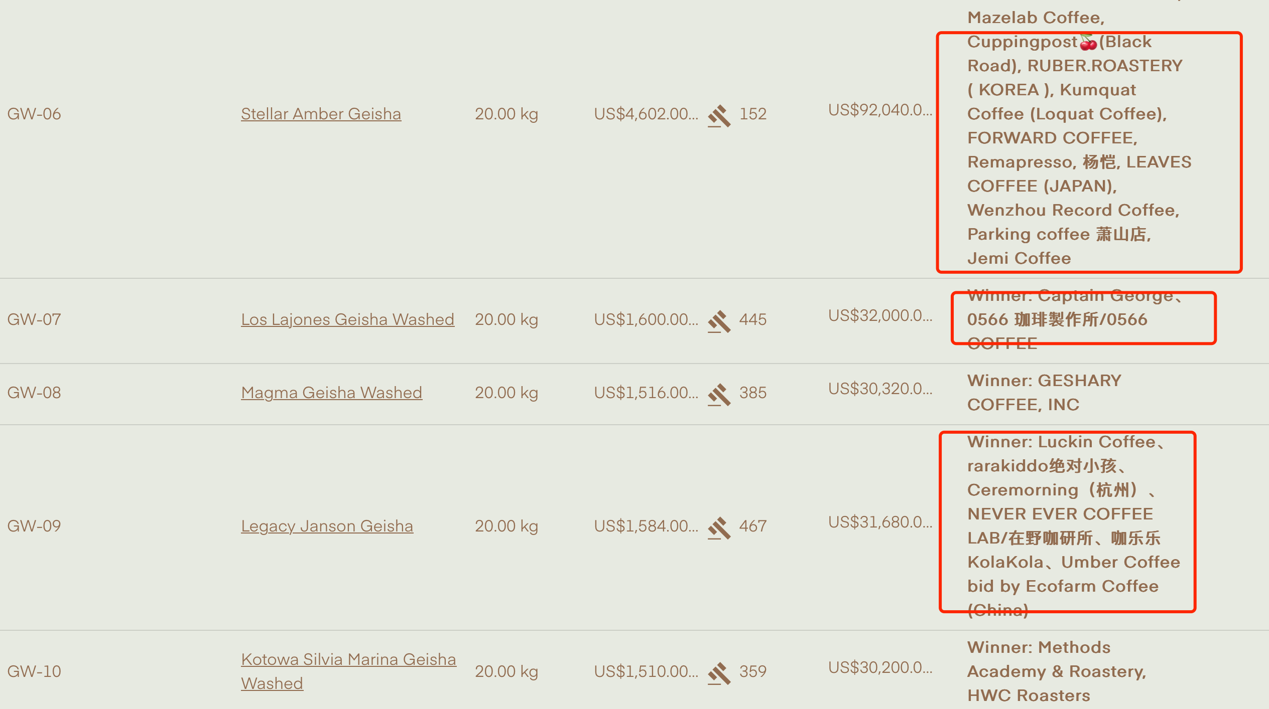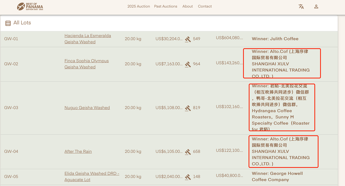 Here is a selection of buyer information from the official website of the 2025 Panama coffee auction 👇
